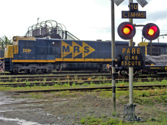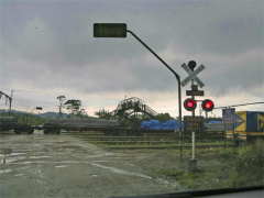 この踏切は操車場の途中。大型機関車も右往左往?していて、とても楽しい場所です。 |