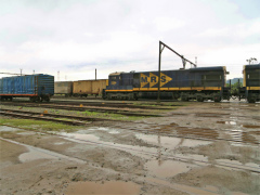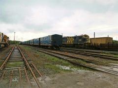 踏切の途中にて。堂々たる貨物列車です。サンパウロ州の隣、ミナスジェライス州(MG)は鉱物資源の宝庫ですので、そこからの鉱石列車などが多数運転されているようです。 |