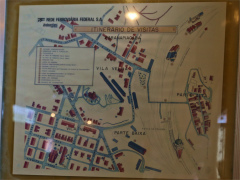 上に通っているのが、自由通路になっている跨線橋。人が歩いているのは、体験SLが走っている線路のとなりです。一応、一般は立ち入り禁止っぽいのですが、そんなことはどーでもいいブラジルですので、歩きたい人は歩いていい場所のようです。 |