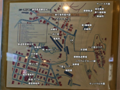 駅と操車場全景です。真ん中に見えるのが時計塔。かつての旧駅舎にあったイギリス製の時計を移設したとのこと。