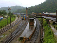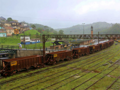 ちなみに、この機関車はサンパウロより内陸専用のいわば「上の機関車」。海岸方面までは行けません。とにかく勾配が急すぎるので、「上の機関車」「下の機関車」と分けておいて、その間を、この峠の特殊なシステムを使って貨車・客車だけを上下する方式になっています。 |