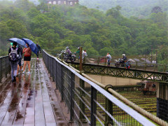 こんな感じで、バイクの人達も押して跨線橋を渡っています。もしここを通らないとすれば、数キロ南に移動して、長大な踏切(下で紹介します)を渡らなくてはならないので、上の街にいくためにはここを通るのが一番なのです。