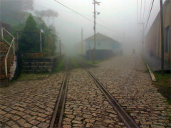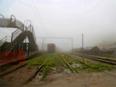 この引き込み線はメンテナンス向上に向かう線との事です。この先にイギリス人技術者の家などがありました。でも霧の赤のため、良い写真が残っていません・・。 |