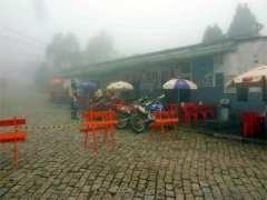 これが跨線橋を渡りきった場所にある食堂・商店。現在パラナピアカーバは、海岸山脈のトレッキングのスタート地点となっており、鉄道町だけでなく、トレッキング目的の観光客を呼び寄せようとしています。ここはきっとそんな人達用のお店なのかも。 |